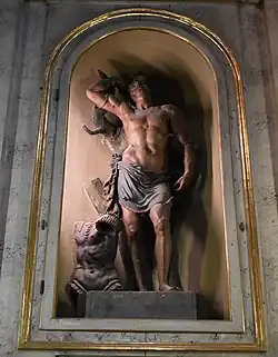 En el nicho del altar de izquierda de la iglesia se conserva una estatua en terracota policromada de san Sebastián realizada en la segunda mitad del siglo XVI por el pintor y escultor Orazio Grillenzoni.[5] La estatua proviene de un altar de la antigua iglesia de Sant'Anna dell'Ospedale.[6]
