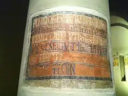 Inscripción en una columna de San Clemente, con la fecha de consagración (Museo Nacional de Arte de Cataluña)