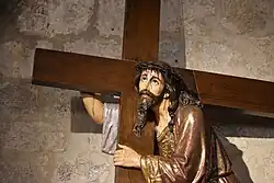 En la misma nave, bajo hornacina, se encuentra una de las imágenes procesionales más conocidas de la Semana Santa burgalesa. Se trata de la imagen de Jesús con la Cruz a Cuestas o también llamado Cristo Chamarilero. Se trata de la imagen titular de la Ilustre Archicofradía del Santísimo Sacramento y de Jesús con la Cruz a Cuestas. La talla fue realizada en el año 1901 por el imaginero barcelonés Ildefonso Serra en su taller de Zaragoza y desde los años 30 está asignado a esta parroquia. En el año 2004, la cofradía realizó un gran esfuerzo por devolver el esplendor a la talla con una restauración que se alargó todo un año y devolvió a la imagen su belleza original.