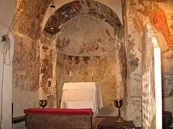 La iglesia original era de dimensiones reducidas, de 5 por 4 m con una nave rectangular y un ábside semicircular hecho de bloques de piedra regular cubierto por una bóveda de cuarto de esfera. En el siglo XVI se amplió alargando la nave y su altura con una nueva cubierta. Se derribaron los muros sur y oeste. De la obra de época románica se conservan el ábside y el muro norte. Se aprovechó la parte baja del campanario de torre de planta cuadrada, que estaba cerca del ábside, para integrarla a la nave. Un nuevo campanario pequeño se levantó sobre el muro oeste con una ventana en cada cara y tejado de cuatro vertientes.[2] En 1936 se arrancaron las pinturas murales románicas, atribuidas al maestro de Santa Coloma y fechadas en el siglo XII. Fueron compradas por un anticuario de Madrid y luego fueron expuestas en Nueva York, en 1939. Actualmente se desconoce su ubicación. Representaban la Virgen con los apóstoles San Pedro y San Pablo. Se conservan otras pinturas murales en el ábside y el muro de poniente, de época gótica y barroca de los siglos XIII a XVI.[3]