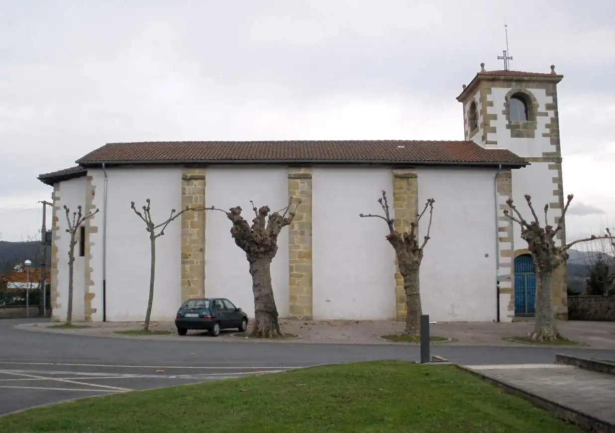 El edificio se encuentra en la localidad española de Derio, perteneciente a la provincia de Vizcaya, en la comunidad autónoma del País Vasco.[1] Se menciona como iglesia parroquial del lugar en el séptimo volumen del Diccionario geográfico-estadístico-histórico de España y sus posesiones de Ultramar de Pascual Madoz, donde aparece descrita con las siguientes palabras:[1]