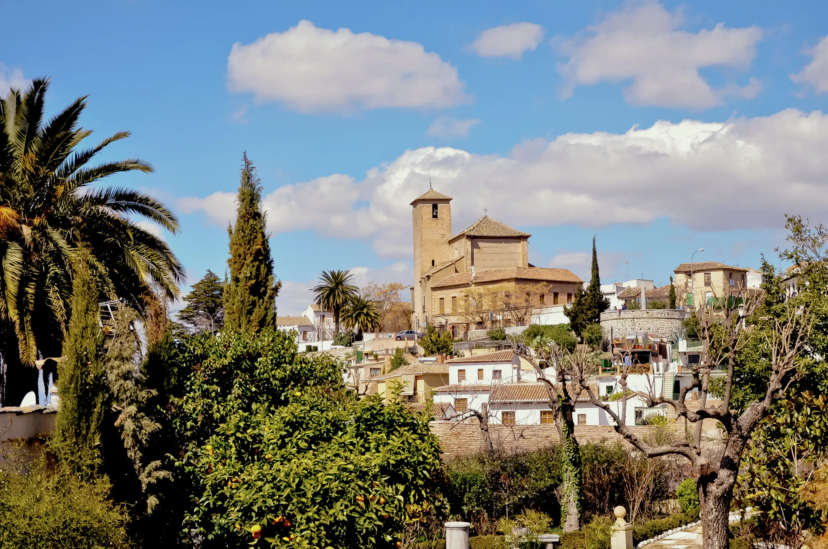 San Cristóbal. Templo situado en la altura más pintoresca y deliciosa que tiene esta población, y construido con las piedras labradas que correspondían al exterior de un palacio árabe; cuyos cimientos se notan al rededor y al pie de los muros de la iglesia. No lejos de Fajalauza, subiendo á San Miguel, hay una cruz gótica entre cipreses; este sitio se llama la Cruz de la Ráuda, y se supone que era panteón árabe bendecido luego en tiempo de los cristianos.(Contreras y Muñoz, 1885, p. 373)