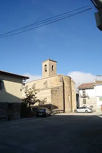 La portada meridional románica está rematada por un tímpano enmarcado por arquivoltas de medio punto y aparece cobijada por el pórtico renacentista.