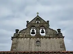 El pórtico, la espadaña y las dos sacristías son añadidos posteriores. Tras la iglesia se encuentra el cementerio parroquial.