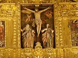 En los trabajos de escultura de la iglesia aparecen documentados Juan de Ávila y su hijo Pedro de Ávila, de quien destaca una Inmaculada. Juan de Ávila realizó obras para los retablos del crucero, de otras capillas y del retablo mayor. Para este último hizo la imagen de San Felipe Neri, el Calvario y los relieves de la Verónica, la Oración del Huerto, Jesús y San Pedro, Cristo con el fariseo y la pecadora.[12]