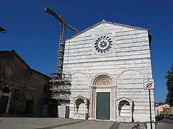 La presencia de los franciscanos en Lucca está atestiguada ya en el año 1228, tomando esta congregación pronto un papel destacado en la vida de la ciudad. La iglesia, construida en ladrillo está compuesta por una única sala con un techo de cerchas (una celosía de canto variable a dos aguas), se completó a principios del siglo XV, con la introducción de tres capillas presbiterales. La fachada presenta dos sepulturas a ambos costados del portal. En la fachada se adoptó una capa de piedra caliza blanca que recién fue terminada en el siglo XX.