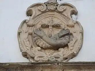 Escudo franciscano sobre la puerta de la Nave de la Epístola de la iglesia de San Francisco de TunjaTechumbre de técnica mudéjar a par y nudillo de la iglesia de san Francisco de TunjaCatas estratigráficas de pinturas murales en la iglesia de San Francisco de TunjaArquidiócesis de Tunja