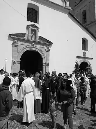 Guardia romana a las puertas de San FranciscoPúlpito de la iglesia de San Francisco, de marcadas trazas barrocas colonialesProcesión de El Resucitado en la Iglesia de San Francisco de Tunja. Talla de San Juan.Centro Histórico de Tunja