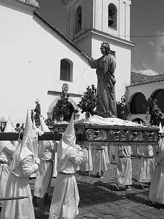 En la Semana Santa de Tunja, la más antigua de Colombia, y considerada Patrimonio Cultural de la Nación de carácter inmaterial, se instala el Santo Sepulcro en el interior de la Iglesia donde le guaradn vigilia los fieles. De esta iglesia parte la procesión del resucitado el Domingo de Resurrección.