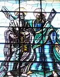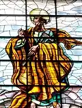 Además, debajo de cada vidriera, otras diez vidrieras con motivos alegóricos que van desde la barca de Pedro, simbolizando la Iglesia, al Cordero Místico, pasando por la fuente bautismal, o el pez y la cesta de panes.[30]