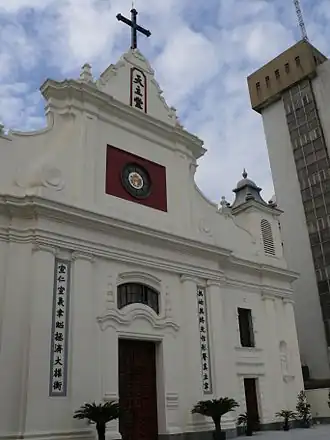 En 1844 los tratados diplomáticos internacionales permiten a las potencias europeas disponer de capillas en los puertos y ciudades de la China imperial abiertas al comercio exterior. En 1847, la primera piedra de la iglesia fue bendecida por el administrador apostólico, el jesuita Ludovico Maria Besi. debía construirse en estilo barroco, con un diseño que recordara la iglesia de San Ignacio (Roma). La construcción comenzó en 1849 y terminó en 1853[4] para ser consagrado el Domingo de Ramos (4 de abril de 1853).