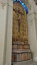 - Altar del Santísimo Crucifijo. A la izquierda del ábside se encuentra Altar del Santísimo Crucifijo formado por un crucifijo de madera colocado sobre un relicario, nueva reconstrucción del entorno original realizada en 1902.