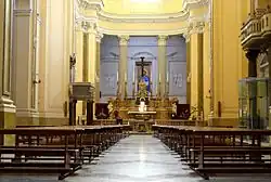 El interior de la iglesia se organiza en dos naves, la central (cubierta con tres cúpulas) y la izquierda. El altar mayor se coloca delante de un nuevo ábside de planta rectangular, cerrado por dos columnas corintias. En los altares laterales hay pinturas de Camillo Lionti y Francesco Peresi, entre otros, mientras que en la capilla a la izquierda del altar está decorada con frescos de Francesco Solimena.