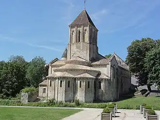 La cabecera se caracteriza por el escalonamiento de las cubiertas de los ábsides y luego del deambulatorio, y finalmente del coro que corona la torre del campanario. Es un modelo de equilibrio.