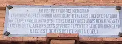 En dicha placa se puede leer lo siguiente: "A LA PERPETUA MEMORIA DEL GRAN ACONTECIMIENTO EN HONOR DEL BIENAVENTURADO SAN ISIDRO LABRADOR, PATRÓN TITULAR DE ESTE PUEBLO.