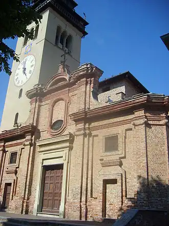 El campanario fue restaurado en 1676 y cubierto por una cúpula de pagoda. La fachada actual, obra de Bernardo Antonio Vittone, data de 1752.[1]