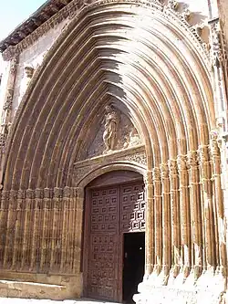 - La portada gótica de nueve arquivoltas, con la imagen de San Juan en el tímpano.