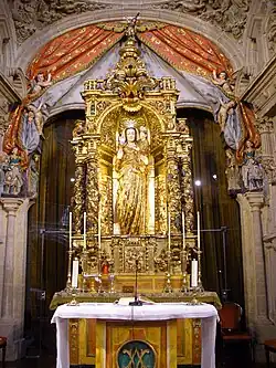 La imagen de Nuestra Señora del Pilar perteneció al mainel de la antigua portada principal de la iglesia y puede ser del siglo XIV. Es objeto de gran devoción popular desde la Edad Media.[8][11]