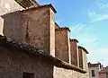La iglesia de San Juan Bautista es un edificio exento, de fábrica de mampostería y piedra angular (es decir, las esquinas se refuerzan con sillares), que presenta fuertes y destacables contrafuertes exteriores por encima de las capillas laterales, de manera que son utilizados como galería.[1][2][3]