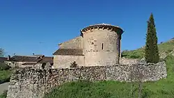 La iglesia, de estilo románico y con una sola nave[5][6][3], se levantó en la segunda mitad del siglo XII,[3][nota 1] o en los primeros años del XIII.[9] Conserva un ábside semicircular,[10] situado en la fachada oriental[3] y, según Herrera Casado, los elementos más destacados del edificio son la portada y la galería porticada del costado meridional.[3] En el lateral de levante, dentro de un recinto amurallado anexo al templo, se encuentra el cementerio de la localidad.