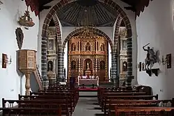 Los arcos torales del crucero son de medio punto, realizadas en cantería roja, que apean sobre pilares de basalto negro, con medias columnas adosadas de orden toscano. Tras el arco principal, se alza el imponente retablo mayor del siglo XVIII, uno de los mejores ejemplos del barroco canario. El retablo se divide en dos cuerpos con un total de seis hornacinas flanqueadas por columnas salomónicas, triples en su calle central. En el nicho principal encontramos al Santo Patrón San Juan Bautista, con San Miguel y San Antonio de Padua a ambos lados, las dos facturas sevillanas de Benito de Hita y Castillo del siglo XVIII. En la parte superior central, la imagen de Nuestra Señora de Candelaria (siglo XVI), flanqueada por los apóstoles San Pedro y San Pablo, obra de artífices palmeros de influencia Montesina del XVI.