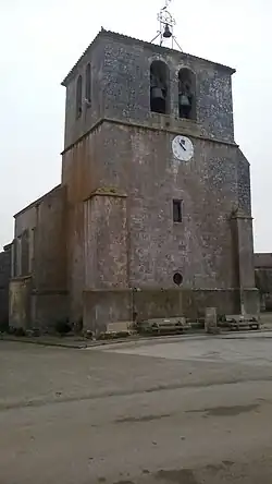 Su campanario ha sido también recientemente reformado debido a su mal estado. Ha sido restaurado, iluminado,limpiado y vallado. Para acceder a dicha parte de la Iglesia, existen unas escaleras de acceso exterior también en forma de caracol. Estas son de piedra y llegan hasta el campanario,donde se sitúan las también recién restauradas campanas, que tocan al ritmo de las horas del día, controladas por el reloj de estilo barroco (siglo XVII-XVIII) del que dispone la fachada principal. Este reloj requiere un mantenimiento muy específico, ya que se trata de un aparato muy antiguo que se controla manualmente. Esta labor a día de hoy es llevada a cabo por un vecino del municipio, quien se encarga de hacer una revisión diaria del aparato para su correcto funcionamiento.