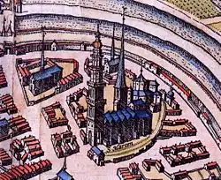 Ya en 1230[2] la iglesia de toba estaba siendo reemplazada por una basílica protogótica, más grande, dedicada a san Martín de Tours. Esta nueva iglesia aparece en el sello más antiguo de la ciudad, que data de 1245. El gran edificio presentaba un interior dividido en tres naves, transepto y coro ábsidial y torre en la fachada.