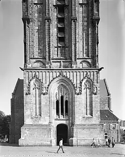 Una tercera torre, de más de 100 metros, fue construida más al oeste de la iglesia. Fue terminada en 1553 o 1554 según el modelo de la torre del campanario de la catedral de Utrecht.