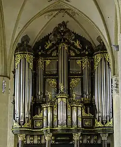 En 1542 el instrumento fue sometido a una reestructuración radical en el nuevo estilo renacentista, después continuada por Andreas de Mare de Gante. En el siglo XVII, la Comuna quería ampliar el órgano y encargó la obra en 1628 a Anthoni Verbeek, que diseñó la caja barroca pero dañó considerablemente el instrumento, tanto es así que en 1672 se suspendieron los trabajos. En 1685 se encargó a Jan Helman, relojero local, que murió cinco años más tarde, sin tener éxito en la empresa.