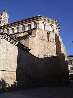 Al exterior llama la atención la galería de arquillos ciegos de medio punto y doblados bajo el alero, fruto de un recrecimiento posterior.