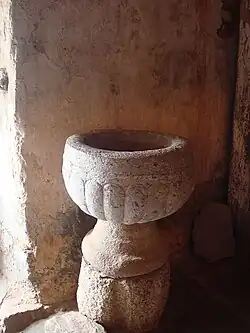 - ↑ Durante la restauración de las cubiertas y del cuerpo se toma constancia de una modificación en su estructura, habiendo un hueco de ventana cegado en el baptisterio, posiblemente para la construcción de la escalera de acceso a la espadaña o campanario.