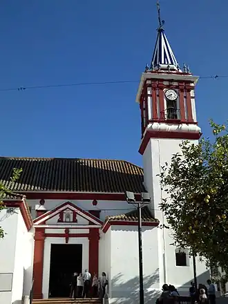 De estilo barroco, construida en el último cuarto del siglo XVIII sobre la que se erigió en el siglo XVI (de estilo gótico-mudéjar sevillano) que fue destruida por el terremoto de Lisboa de 1755. Todo parece indicar, según las fuentes consultadas (Archivo Arzobispal de Sevilla, bibliotecas...) que el edificio actual se reedificó sobre otro ya existente y que al parecer databa del siglo XVI de construcción de estilo gótico-mudéjar sevillano (era de tres naves sobre pilares que sostenían arcadas de baja altura, con una capilla mayor cubierta de bóveda de nervaduras).
