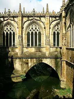 El claustro se construyó sobre el río Ubao, los lados este y oeste están realizados sobre puentes dejando pasar el río al centro de lo que debiera haber sido el patio. Esta curiosidad lo hace único en España.[1]