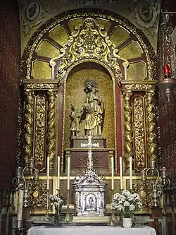 - Retablo de San José: de madera sobredorada y con columnas salomónicas en los extremos, en él se halla la imagen de San José con el Niño Jesús, de talla. Éste retablo se encuentra en la capilla del Sagrario y a sus pies se dispone un altar de mármol, sustentado por columnitas del mismo material, sobre el que se dispone el Sagrario, de bronce dorado y de estilo neobarroco. En la actualidad se usa este sagrario, mientras que permanece inactivo el situado en el altar mayor.