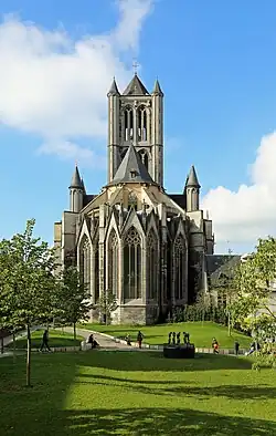 La torre central, que fue financiado en parte por la ciudad, sirvió como puesto de observación, siendo trasladadas las campanas de la ciudad al construirse el vecino campanario de Gante. Estas dos torres, junto con la de catedral de San Bavón, todavía definen el horizonte medieval de la ciudad. Uno de los tesoros de la iglesia es su órgano, construido por el famoso fabricante de órganos francés Aristide Cavaillé-Coll.