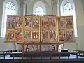 El antiguo altar de la iglesia de San Nicolás fue realizado entre 1478 y 1481 en el taller de Hermen Rode, pintor también oriundo de Lübeck. Se trata de uno de los altares alemanes más grandes de la Liga Hanseática en el siglo XV. Las pinturas de los flancos exteriores de este políptico muestran la vida de San Nicolás y San Víctor, la parte central y los paneles desdoblados muestran treinta esculturas de madera formando la denominada galería de santos. Los paneles exteriores muestran los emblemas del Gran Gremio de Tallin y la Hermandad de los Cabezas Negras. La grada muestra a los Padres de la Iglesia y los fundadores de varias órdenes: Bernardo de Claraval, Gregorio Magno, Jerónimo, Agustín de Hipona, Ambrosio de Milán y Benito de Nursia.[3]