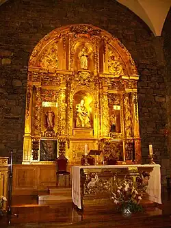 El ajuar de iglesia (retablos, pinturas, etc..) no sobrevivió a los saqueos franceses y a los incendios y es moderno en su totalidad. Sí se conservan algunas piezas antiguas de orfebrería en la sacristía. Dentro de la imaginería existente destacan un crucificado de madera de roble esculpido por Aureo Rebolé en 1966 y una imagen de gran tamaño del titular de la parroquia, obra de Anselmo Salanova y donada a su pueblo en 1806 por Andrés Gurpide,[6] vecino de Zaragoza y defensor de los Sitios que sufrió la ciudad durante la Guerra de la Independencia. Recientemente en el presbiterio se ha colocado un retablo barroco procedente de la antigua parroquia de Santa Engracia de Sarriguren (Egüés).