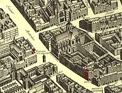 - ↑ Cadastre de Paris par îlot (1810-1836) Archivado el 26 de enero de 2016 en Wayback Machine., plan 36e quartier « Arsenal », îlots numéros 6 et 7 , F/31/89/08 Archivado el 18 de enero de 2017 en Wayback Machine.
