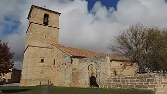• En las reformas de los siglo XV-XVI se añadieron las dos naves laterales y los ábsides de cabecera plana;[8]​ la portada románica, con arquivoltas con elementos decorativos vegetales,[9]​ se trasladó a la fachada sur.