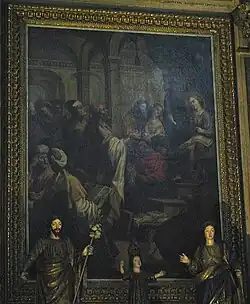 - ↑ There are seven paintings, two of which are attributed to Bento Coelho da Silveira(ca. 1630-1708): The Naming of Jesus (Circumcision), The Adoration of the Shepherds, The Annunciation, Calvary, The Resurrection, Pentecost, and The Assumption of Mary. See José Alberto Seabra Cavalho, Sete Imagens para o Calendário Litúrgico. As pinturas do altar-mor da Igreja de São Roque / Seven Pictures for the Liturgical Calendar. The Church of S. Roque main chapel tribune paintings (Lisbon, 2006), pp. 7-55. See also Caetano, Pintura, nos. 29-33, 132-133 (vol. 1: 50-53, 130-131).