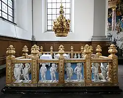 Lambert van Haven, arquitecto de la iglesia, tenía su propio proyecto para el altar y el retablo, pero el rey Cristián V se interesó en las ideas del arquitecto sueco Nicodemus Tessin, a quien encomendó el diseño del altar en 1694. Al año siguiente llegó a Copenhague la maqueta de la obra.