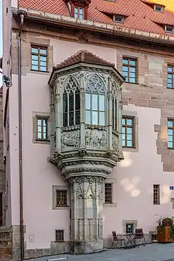 Melchior Pfinzing (1481-1535), preboste de Sebaldo y consejero imperial, fue responsable de las importantes renovaciones del segundo piso en 1514 al estilo del floreciente Renacimiento: tenía pequeñas salas medievales en la esquina noreste de la 2do Construye un gran estudio con artesonado de madera en la planta superior. Esta medida también se aprecia desde el exterior porque para ello se “levantó” la cercha del techo. Se ha conservado el artesonado. Restos del coro de madera, construido originalmente en el s. planta alta en 2. Las ventanas de la derecha en la fachada este todavía se pueden ver en la piedra arenisca sobre la ventana. Pfinzing también es responsable de las dotaciones centrales en la iglesia de Sebaldus: durante su período de servicio, la finalización de la tumba de Sebaldus, la fabricación de la ventana del Emperador y, por último, pero no menos importante, la ventana de Pfinzing, cada una ejecutada por Veit Hirsvogel según los diseños de Alberto Durero.