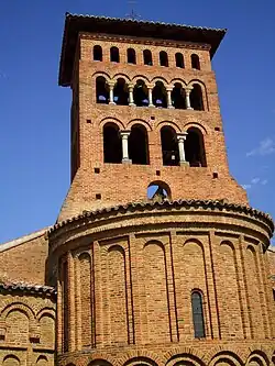 De estilo románico-mudéjar, s. XII, su planta es rectangular de tres naves rematadas por ábsides semicirculares; en el central, los refuerzos están resueltos mediante cuatro contrafuertes exteriores que se prolongan en ladrillo.