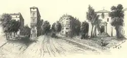 (A la izqda., actual rue Consolat; en el centro, boulevar de la Libération; contra la iglesia, actual boulevar Franklin-Roosevelt. Aunque el lugar es menos campestre, los edificios que se ven en este grabado (salvo la iglesia)se conservan