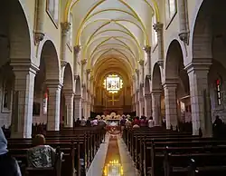 Fue dedicada en el 1347[8] a Santa Catalina de Alejandría. Fue construida en un estilo neogótico más moderno, y desde entonces ha sido modernizada varias veces acuerdo con las tendencias litúrgicas aprobadas después del Concilio Vaticano II (Concilium Oecumenicum Vaticanum Secundum). Esta es la iglesia donde el patriarca latino de Jerusalén celebra la misa de medianoche en la víspera de Navidad.