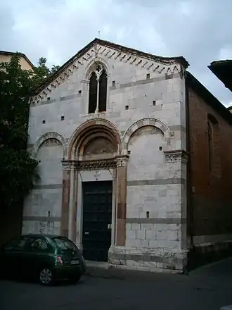 La iglesia está documentada desde tan temprano como el siglo X, aunque sin duda es más antigua como atestiguan las tumbas lombardas que existen en su interior. La iglesia fue reconstruida en el siglo XIII en mampostería, mientras que la fachada se completada en la segunda mitad del siglo XIV por Coluccio di Collo. El uso de arcos ciegos de la fachada es un elemento de transición del románico al gótico. Mientras que la parte superior de la fachada se remonta a un período posterior.