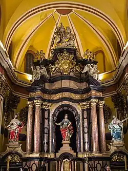 El retablo central de la iglesia, elaborado entre 1750 y 1760, es uno de los más apreciados por la feligresía zaragozana. Fue elaborado por José Ramírez de Arellano, participante activo de las obras en El Pilar. Tiene una estructura policromada y destaca el uso de jaspes, mármoles y estuco pintado imitando oro. Del retablo proviene la estatua ecuestre de san Jorge, que adorna la Diputación Provincial de Zaragoza.