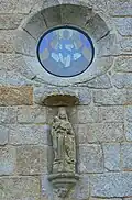 Óculo e imagen pétrea de la Virgen con el Niño.