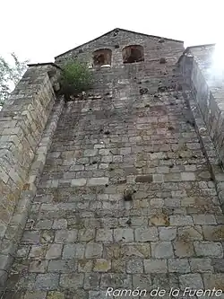 En la fachada norte se observan dos accesos, uno de ellos muy sencillo y el otro con moldura y baquetón sobre columnas simples, con capiteles muy erosionados. En el alzado oeste quedan restos de canecillos cuya iconografía recuerda a la portada principal. También, bajo los huecos de campanas actuales, pueden verse tres huecos tapados. El remate superior de este muro es un frontón triangular.