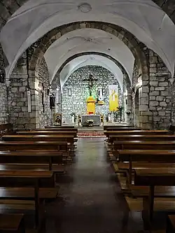 El edificio actual tiene una nave, dos capillas laterales, en el lado de la epístola,[1] y un pórtico de madera con tejadillo sobre la entrada, situada en la fachada meridional. A sus pies se sitúa la torre campanario, de sección cuadrangular.[2]